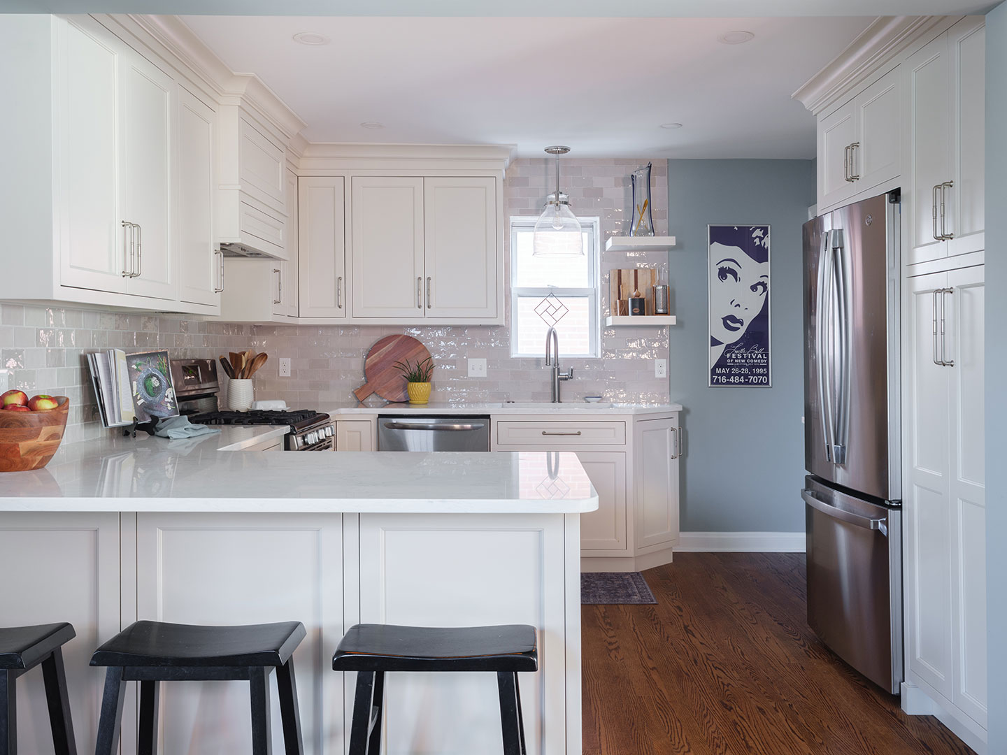 The existing kitchen was defined by a cramped layout, with an awkward peninsula, and too many doorways, all of which limited storage and disrupted flow. The space struggled to support everyday cooking and gathering, and it lacked the details that make a kitchen feel personal.